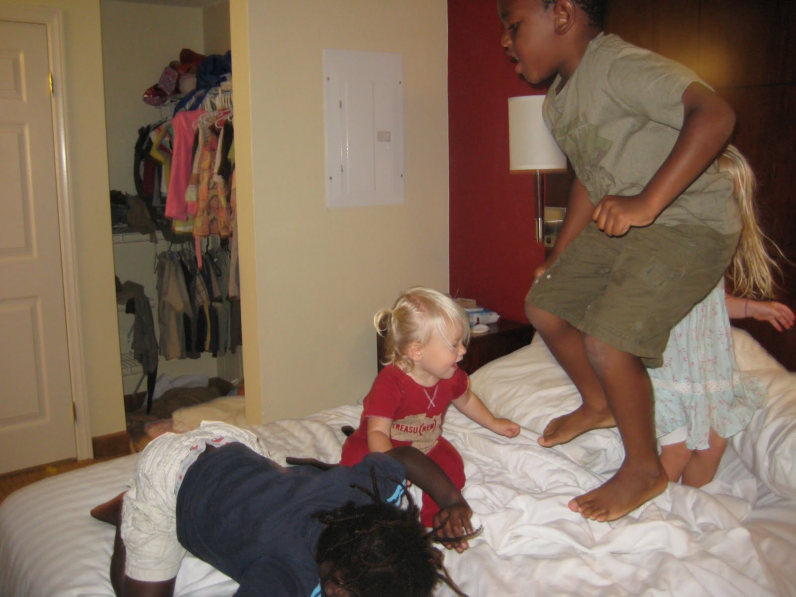 I went to find some photos of that time frame to put into this post, and it appears that during that two-month period, I took all of ten photos.  Anyone who knows me can vouch that I am taking photos constantly, and when I’m not, it’s an indication that things are not going well.  But I’m encouraged to see that despite my recollection of that summer, the kids remember it as a magical time . . . a time when they got to sleep in the same bed with mom and dad, a time when we let them eat things like sloppy joes and nachos with orange cheese at the buffet for dinner, a time when we traded our trampoline for jumping on the bed, a time when we went swimming every day.   Their memories of that time are so fond that they are begging to do it again.