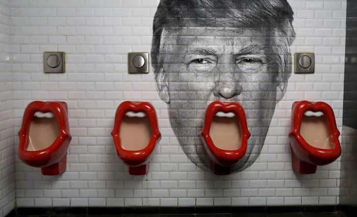 SOMEONE ADDED DONALD TRUMP TO THE WALL OF THIS RESTROOM IN PARIS | boredpanda.com
