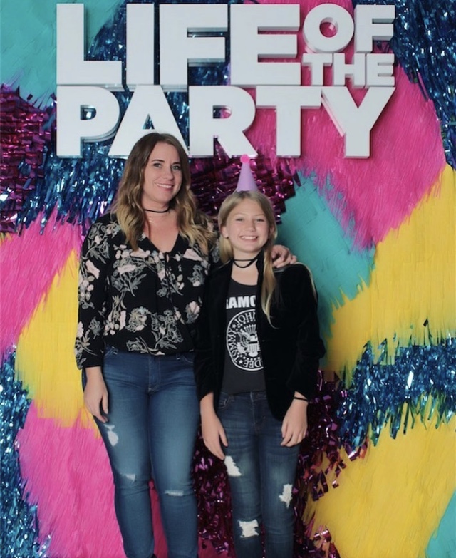 Matching 90’s chokers and ripped jeans. “I’m not, like, a regular mom. I’m, like, a COOL mom.” ? #mom2summit @langhampasadena