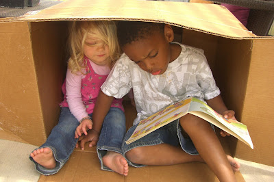 Once they bored of that, they turned their sights to the box. They used it as a fort, then it was a spaceship. They read books while sitting inside. Then they started taking turns wearing it and pretending to be a monster.