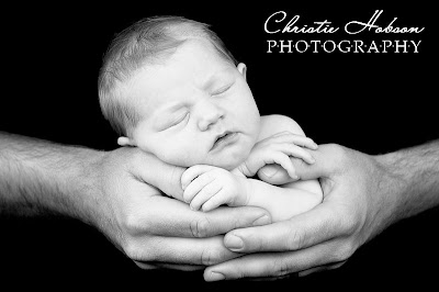 Nancy and Sarah hooked me up with a photo session for Karis with Christine Hobson, an amazingly talented photographer. She came over on Sunday and turned our house into a photo studio. She is so good with babies and knows how to keep them sleeping while snapping all kinds of poses. Here is a photo of her doing her thing: