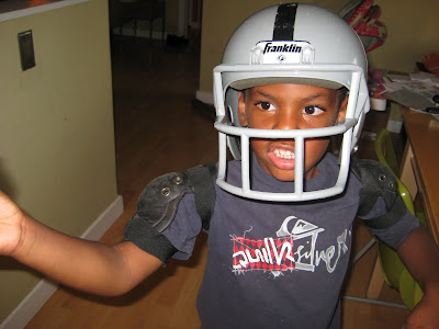 Jafta is my crafty little kid. He is always coming up with creative solutions for the things he wants, and this often involves dressing up like someone else. Like when he was watching football with Mark, and he suddenly bolted out of the room and re-emerged with two rolls of toilet paper under his shirt, declaring himself a “USC football guy”: