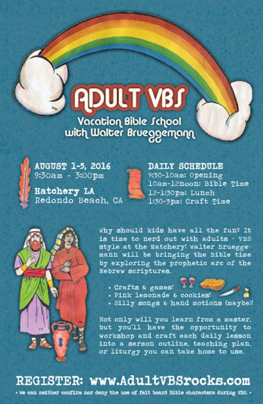If you live in the greater LA/Orange County area and you are a Christian with a slight bent to the irreverent, there are some upcoming events that might be revelant to your interests. First, in two weeks LA’s Hatchery will be putting on an Adult VBS at their headquarters in Redondo Beach. This is a fun, tongue-in-cheek experience that will also provide some incredibly meaty content, with Walter Brueggemann as the main speaker (and myself leading “craft time” on Thursday and Friday.) You can come . . .